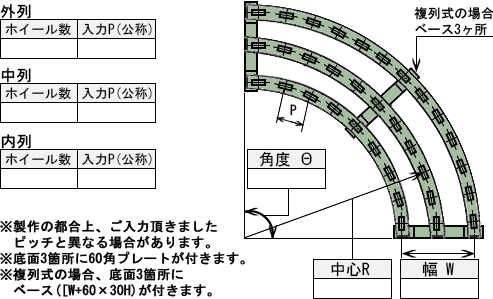 | 中心R | 列幅 | ピッチ | 角度 | 列式 |